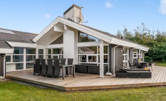 Single-family house, built in 1989. 2.7 km from the sea. Private: natural state property 1'260 m2, indoor pool (3 x 6 m, 18 m2, depth 120 - 120 cm). Terrace (140 m2), children's playground (swing). In the house: sauna, washing machine, tumble dryer. Parking at the house. Grocery 3 km. The owner does not accept any youth groups. "Mechthild" - 2.7km from the sea", 4-room house 150 m2. Object suitable for 9 adults + 1 child. Living room with TV, radio, CD-player and DVD. 1 room with 1 double bed. 1 room with 1 double bed. 1 room with 1 bed and 1 x 2 bunk beds. Open gallery, 1 room with 1 x 2 bunk beds. Kitchen (oven, dishwasher, 4 ceramic glass hob hotplates, microwave, freezer). 2 showers/WC, hydro massage bath. Facilities: children's high chair, baby cot. Internet (WiFi). Please note: non-smokers only. Maximum 2 pets/ dogs allowed. 849-81903