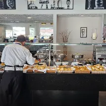 * good breakfast opening at 6:30am sharp (doors are locked before then), with lactose-free milk and gluten-free options