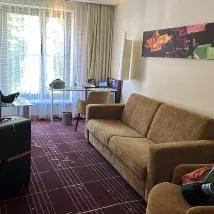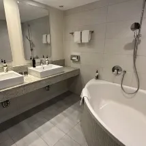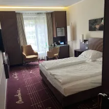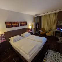 Нам очень понравилось. Комната просторная, светлая. Удобные кровати. Хорошая система кондиционирования, работает почти бесшумно. Много разнообразного освещения и подсветок, оригинальные тумбочки. Отличная звукоизоляция с другими номерами. Улицу немного слышно, но ночью тихо. В отеле есть сауна - приятно расслабляет после длительных прогулок. Остановки троллейбусов рядом; прямой № 2 и к жд вокзалу и в аэропорт. Завтрак нормальный, но для нас 23 евро с человека, пожалуй, многовато. В номере есть минихолодильник с оригинальной прозрачной дверцей, чайник. Это очень удобно. Я бы рекомендовала этот отель.