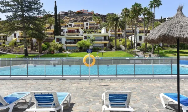 Modern, cosy holiday development "Bungalow Rocas Rojas 406B". In the centre of San Agustín, in a central, busy position. For shared use: garden with lawn, swimming pool angular heated (seasonal availability: 01.Jan. - 31.Dec.). Public parking on the road. Shop, supermarket 300 m, restaurant 500 m, bus stop "Clinica Roca" 700 m. The owner does not accept any youth groups. Please note: airfield 27 km from the property. Neighbourhood highly sensitive to noise. Quietness and good behaviour expected. "Bungalow Rocas Rojas 406B", 4-room house 80 m2. Object suitable for 5 adults + 1 child. Comfortable and modern furnishings: living/dining room with dining table and digital TV. Exit to the balcony. 2 rooms, each room with 2 beds. 1 room with 1 pull-out bed (2 pers.). Kitchen (oven, dishwasher, 3 ceramic glass hob hotplates, toaster, kettle, microwave, freezer, electric coffee machine). Shower/WC. Balcony. Balcony furniture. View of the forest. Facilities: washing machine, safe, iron, children's high chair, baby cot for up to 2 year olds, hair dryer. Internet (WiFi, free). Please note: non-smokers only. 2022-T3935 ESFCTU0000350120001887450000000000000VV-35-1-00172479