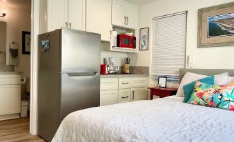 Brew fresh coffee and make breakfast in our brand new mini kitchen. Then, step off the patio and onto a laidback walkway. Turn west and feel sand beneath your feet in 30 seconds or head east towards walkable local shops, cafes, dining and night life.