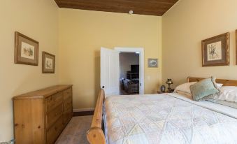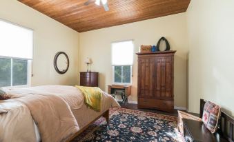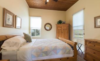 Allow yourself to travel back in time while you enjoy this 2 bedroom 1 bath 1000 square foot home that comfortably sleeps 4 guests in its king and queen sized beds. The newly remodeled kitchen with its granite counter-tops and modern appliances is fully equipped to prepare delicious meals. The flagstone patio with its propane grill and wood-burning Santa Maria style bbq makes a wonderful setting for enjoying a traditional Central Coast home-cooked tri-tip steak with all the fixings. Guests can relax on the patio or wrap-around porch, sip local wines and beers while watching hawks and vultures circling overhead, deer grazing on the nearby hillsides and wild turkeys foraging in the adjacent fields. Savor the fresh country air and revel in the sound of silence.