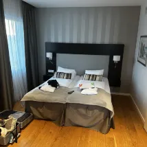 Clean and very big hotel with swimming pool and gym amenities. Comfortable beds (though would be better if the beds were able to be pulled further apart as it felt more like a double bed with 2 sets of covers.) We luckily got upgraded for free to a twin bedroom suite which had a large balcony with a beautiful view out onto Sandefjord fjord. Breakfast was excellent with a wide variety of food options.