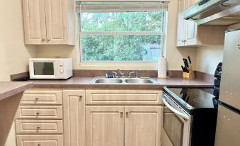 Enjoy a peaceful stay at this centrally located 650 sq. ft. 1-bedroom, 1-bath duplex apartment. Situated on the ground level, it offers a partial view of Lake Monroe and a private entrance. Just steps from Ft. Mellon Park, The Riverwalk, Sanford Marina, and the Historic Downtown District, you'll be within walking distance of parks, restaurants, shops, galleries, and pubs. Free on-site parking is available for your convenience. Perfect for a relaxing and convenient getaway!