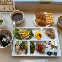朝食が思った以上に豪華でびっくり!白米もパンもフレグラもあり、さまざまなニーズに相応じていると思った。気になっていたスムージーも3種類飲み比べることができ満足。さつまいもとリンゴのスムージーは甘め、洋梨のグリーンスムージーはさっぱりとしていて美味しかった。妻はぶどうといちじくのスムージーが気に入ったようです。またこの付近に来たら利用したいと思う良いホテルだった。