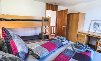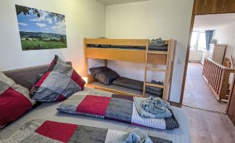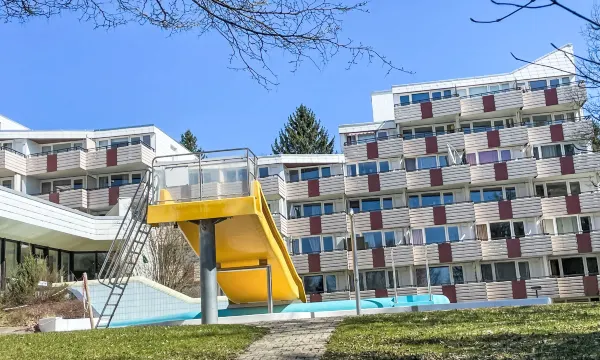 Resort "Predigtstuhl Resort". Above Sankt Englmar, 1 km from the centre, on a slope. For shared use: swimming pool, indoor pool (seasonal availability: 01.Jan. - 18.Nov. and 20.Dec. - 31.Dec.). Children's playground. In the complex: sauna, fitness room, spa area, table tennis, washing machine (extra). Public parking on the road. Central parking spaces. Supermarket 2 km, bus stop "Predigtstuhl" 350 m, outdoor swimming pool 20 m. Minigolf 75 m, walking paths from the house 30 m, slopes 1 km. Nearby attractions: Sommerrodelbahn Grün 3.5 km, Waldwipfelweg 5 km, Regensburg 67 km. Well-known ski regions can easily be reached: Predigtstuhl 1 km, Pröller 3.3 km, Großer Arber 45 km. Outdoor swimming pool (open from June to September). "Familienspaß inkl. Schwimmbad und Sauna", 2-room apartment 53 m2 on 2nd floor. Object suitable for 2 adults + 2 children. Tasteful furnishings: living/sleeping room with 1 sofabed, dining table and satellite TV (flat screen). Exit to the balcony. 1 room with 1 x 2 bunk beds (80 cm, length 180 cm), 1 double bed (180 cm, length 200 cm). Kitchenette (2 induction hot plates, toaster, kettle, microwave, grill, electric coffee machine). Shower/WC. Heating. Balcony. Balcony furniture. Beautiful view of the countryside. Facilities: Internet (WiFi, free). Please note: non-smokers only. Smoke alarm. Microwave with baking function.