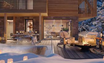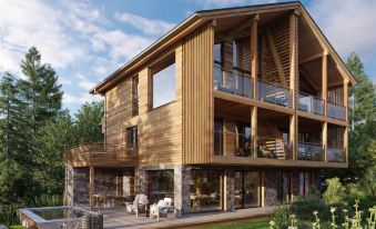 Sankt Georgen: Luxurious resort "Kreischberg Pool Villa b.AlpsResort", built in 2022. 1 km from the centre of Sankt Georgen, in a quiet, sunny position, 150 m from the skiing area. In the house: central heating system. Parking on the premises. Supermarket 1 km, railway station "St Lorenzen" 170 m. Gondola lift, skisport facilities, ski school 150 m. Well-known ski regions can easily be reached: Kreischberg 150 m. Please note: In case of good snow conditions, the house is accessible on skis. The holiday properties may differ in living space, floorplan, equipment and furnishing. "Villa 5a mit Sauna & Pool", 5-room semi-detached house 114 m2. Spacious and bright, tasteful furnishings: living/sleeping room with dining nook and satellite TV (flat screen). 3 double bedrooms, each room with shower/WC. 1 room with 1 x 2 bunk beds, 1 double bed. Open kitchen (oven, dishwasher, 4 ceramic glass hob hotplates, microwave, grill, electric coffee machine). 2 showers/WC, sep. WC, Sauna. Large terrace. Terrace furniture. Beautiful view of the ski run and the countryside. Facilities: Internet (WiFi, free). Please note: non-smokers only. The property is one of a type of property or apartment. The villa has a private, heated pool on the terrace.