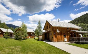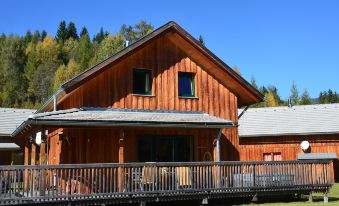 Stadl an der Mur: Cosy, comfortable holiday village "Almdorf Stadl by Alps Resorts". 2 km from the centre, in a quiet, sunny position on a slope, 1 km from the lake, 10 km from the skiing area, in the countryside. Private: natural state property. In the house: central heating system. Parking at the house. Shop 2 km, supermarket 2 km, restaurant 2 km, bathing lake "Stadl an der Mur" 1 km. Golf course (18 hole) 13 km, tennis 1 km, skisport facilities 10 km. Nearby attractions: Mineralienmuseum Turracher Höhe, Burg Finstergrün Rammingstein, Nockyflitzer Turracher Höhe. Well-known ski regions can easily be reached: Flattnitz 10 km, Kreischberg 12 km, Turracher Höhe 21 km. Please note: the photograph shows a typical example. All houses/apartments are individually designed/furnished. This type of house is available with different layouts of rooms and beds. WIFI, washing machine and highchairs are not available in every house. Special requests must be requested when booking already and can no longer be considered locally. " 140 mit 4 Schlafzimmern & Sauna", 5-room chalet 100 m2. Bright, partly with sloping ceilings, wooden furniture furnishings: living/dining room with dining table, satellite TV and flat screen. 2 double bedrooms. 1 room with 3 beds. 1 room with 1 x 2 bunk beds. Open kitchen (oven, dishwasher, 4 ceramic glass hob hotplates, kettle, microwave, electric coffee machine). Bathroom, 3 showers/WC, sep. WC. Balcony or terrace. Terrace furniture. Beautiful view of the countryside. Facilities: sauna. Internet (WiFi, free). Parking. Please note: non-smokers only. Smoke alarm. The property is one of a type of property or apartment.