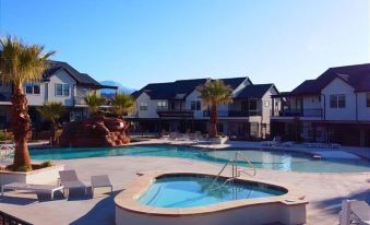 Located in the beautiful Southern Utah town of Santa Clara, Ocotillo Springs is a gorgeous overnight rental community. The Ocotillo Springs community is focused around a luxurious clubhouse and a refreshing tropical pool with a red rock water slide and splash pad. The community offers exciting indoor and outdoor recreation for all ages including pool, poolside cabanas, hot tub, splash pad, pickle ball courts, and a clubhouse with ping pong, pool table, kitchen, bathrooms, propane grill and more.