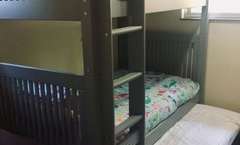 -The third bedroom is quite small containing a bunk bed plus the pullout trundle (all three are single beds). Our smallest fans will find a toy box under the desk in the closet.