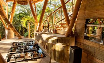 Staying in this elegant bamboo tree house surrounded by green and its bio-pool is a completely unique stay.