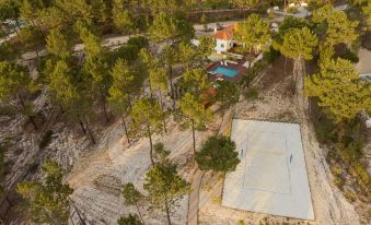 The highlight of the one-hectare garden is the beach volleyball court with white sand, measuring 26x16 meters, with a playing area of 16x8 meters according to Olympic standards, equipped with gear from the Portuguese national team. Alternatively, you can also play football or badminton on the court. A tournament ping-pong table is also available for sports activities. A path through the garden leads to the gate on the other side of the property, from which you can reach the riding area on foot. The equestrian school is another highlight of the estate, especially if you have an interest in equestrian sports and horses. There are also tennis courts and a basketball court on the estate. Renowned golf courses, such as Troia and Pinheirinho, are less than 30 minutes away.