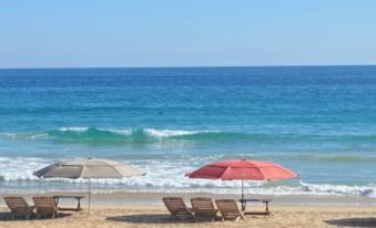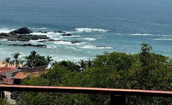 Enjoy dramatic ocean views from our new (Spring 2024) Cabanas Alegria Master Suites home for groups of 4-6 people. Ideally situated in the center of the paradisical twin beach villages of Mazunte and San Agustinillo, see and hear the waves from both Master Suites, the large Kitchen and the wood Terrace. Just a 3-minute walk to the best swimming beach, and steps to Yoga Hridaya, shops, restaurants, mini-grocery, and bakery.