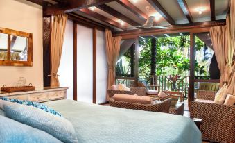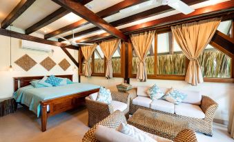 Thoroughly enjoyed my stay here. Rooms were spacious and comfortable, AC worked extremely well, bed was comfortable. The shower (which was outside though private) did not have great water pressure and one of the two (yes I had two) didn't function. Food was delicious and the overall setting was lovely and relaxing. A wonderful escape with delightful service. Laundry service was very reasonably priced and quick.