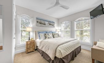 Beautifully renovated, The Summit is the highly desirable first-floor villa in Seagrove Beach and is closest to the beach. This private, low-rise gated community of only 24 villas sits directly on coveted 30A with only 4 buildings and 2 villas per floor. With its classic coastal design, The Summit offers two spacious King bedrooms both with ensuite bathrooms, and a double Queen guestroom with an ensuite full bathroom. The expansive living and dining areas offer plenty of room to spread out and relax after a beach day. The well-stocked chef’s kitchen features custom white quartz countertops and an oversized island with 4 barstools. The sprawling coastal-washed dining table spaciously seats 8. The indoor gas fireplace offers "light-switch" convenience for cooler evenings or roasting s’mores. Double French doors lead out to the oversized patio, nestled quietly near the heated Olympic sized pool and outdoor shower.