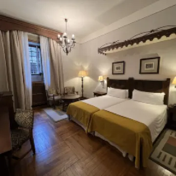 Great hotel in old historical building with lots of antiquar pieces and furtiture which makes the pkace a sort of museum itself. Rooms are decorated in style of previous ages with modern bathroom though (bathroom has both a shower and a bath). Amazing view on the main cathedral from the breakfast hall. Old arched hall of the restraunt. Spectacular inner yards with small fontains.
