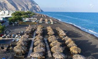 Life on the islands of Greece is carefree, to spend most of the time on the beach. Pleasure Studios Beachside is Ideally located 2 minutes' walk from Perissa's black sandy beach, the epitome of life on the beach of the island. in Perissa, the largest and most impressive beach of Santorini and just a breath away from the village of Perissa, Pleasure Studios Beachside is considered a "must" between the beach. This famous Perissa beach in