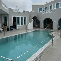 Stayed here for a week with friends, everything was excellent, friendly, welcoming staff. They picked us up and took us back to airport for a reasonable price. Hotel is very clean and quiet, not far from local amenities. Short bus ride to Fira, don’t need to walk on busy road. Booked and had massage at hotel, which was excellent. Would thoroughly recommend to friends and family. Katerina’s is excellent for lunch/ dinner.