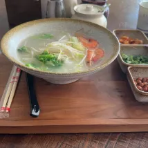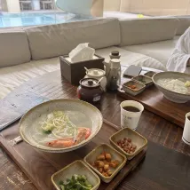Постельное белье удобное и чистое ~ а на завтрак предоставляется лапша с морепродуктами 😆