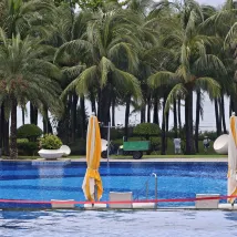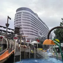 1. **Оборудование:** Настоятельно рекомендую номера с панорамным видом на море (особенно те, что расположены с видом на открытое море). Впечатления от проживания превосходные, с высоких этажей открывается первоклассный вид на море. Обстановка у бассейна в отеле превосходная, посетителей немного. Сотрудники (спасатели) активно патрулируют, следят за полотенцами и убирают мусор со дна, обеспечивая не только чистоту, но и полное чувство безопасности. Также имеется специализированный детский ресторан. Дети так сильно любят играть в воде, что у нас совершенно не оставалось времени на фотосъемку! Только вчера мы позволили ребенку поужинать в детском ресторане самостоятельно, а сами полчаса фотографировались. Зелень, газон, море, голубое небо — здесь действительно каждая фотография получается потрясающей!!!