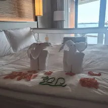 2. **Обслуживание:** При заселении предоставляется подробное описание отеля и бумажный бланк с расписанием мероприятий. Участвуя в активностях, можно собирать печати и обменивать их на призы. Мини-бар дополнительно включает комплиментарные фрукты. Если заранее сообщить о дне рождения (предоставив документы), можно получить бесплатный торт. Завтрак подается до 11 утра, что очень удобно для любителей поспать подольше. Услуги дворецкого заботливы и предупредительны. Он активно напоминает о различных потребностях, которые легко упустить из виду (что подтверждается нашей перепиской). Лилия!
