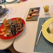 На ужин мы пошли в отельный детский ресторан "Qù". Обеденные столы подходящей высоты, милая посуда и специально разработанное здоровое меню для детей – все это демонстрировало заботу отеля. Что превзошло все ожидания, так это то, что во время нашего ужина пришел клоун. Поскольку мы пришли довольно рано и были единственным столиком, клоун 🤡 устроил индивидуальное магическое шоу 🪄 и очень терпеливо провел маленький урок. Ребенок был просто ошеломлен, это было так весело и волшебно 🤩!