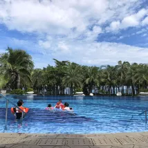 По праву считается лучшим семейным отелем в Санье: и обстановка, и удобства, и сервис — всё на высшем уровне👍. Идеально подходит для малышей: весь день расписан занятиями, а открытый бассейн и панорамный бассейн на крыше просто великолепны. Дети были в восторге! Большой выбор блюд на завтрак, а в представительском лаундже можно подкрепиться в любое время. Обслуживание внимательное, чувствуешь себя как дома! Как раз попали на мой день рождения, и нам подарили небольшой торт и свежие цветы😃. Отличный отдых! ~Тюльпан🌷