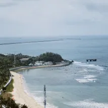 В Китае, о. Хайнань, мы второй раз, в этом году мы были в трех бухтах г, Санья. Все бухты разные. Ялонг Бэй красивый пляж, но нет прогулочной зоны, в Санья Бэй, большая береговая линия и прогулочная зона вдоль, но рядом дорога и нет пляжной инфраструктуры. Бухта Дадунхай самая красивая , с классным променадом, небольшим флером Геленджика или Анапы, многие китайцы говорят на русском, все меню продублировыны на русский язык.