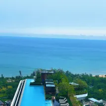 Я был на встрече в соседнем отеле Fairmont Haitang и заметил это здание, которое заметно выделялось – 259 метров в высоту! Неужели это самое высокое здание в Санье?! Нижние этажи этого здания занимает отель Rosewood, а верхние – пять или шесть гостиничных апартаментов. Отель, в котором я остановился, был довольно хорошим; мне повысили категорию номера до двухкомнатного номера с одной гостиной и видом на море всего за 167 юаней за ночь. Поскольку это был не сезон, проживание было превосходным. В номере был холодильник, микроволновая печь, посудомоечная машина и мини-кухня, и даже с кровати открывался вид на море. Отличный опыт, пять звёзд!