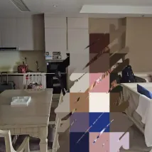 Моему сыну очень понравился стиль дома, особенно горка; ему было очень весело. Дом был чистым и опрятным, там были стиральная машина и сушилка для одежды, чтобы было удобно стирать. Удобства были в полном порядке. Однако, когда я спросил адрес доставки, встречающий нас сотрудник назвал мне адрес курьера, потратив на объяснения много времени. Не знаю, то ли он не понял мой вопрос, то ли ему было просто лень отвечать. Его поведение было резким и нетерпеливым, отчего мне стало неловко. Поскольку он был занят другими гостями, я спустился вниз за одноразовыми тапочками. В этот момент я увидел спускающийся лифт и узнал человека слева. Я оглянулся, чтобы убедиться, что это мой администратор, и он спросил: «Чего вы на меня смотрите?» Я лишился дара речи.