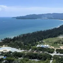 Окружающая среда: С верхнего этажа отеля Poly Rosewood открывается вид на 5-звездочный пляж залива Хайтан 🏖️. Моё четырёхдневное пребывание было настолько комфортным, что мне не хотелось уходить, поэтому я вышел на большой балкон, чтобы сделать фотографии.