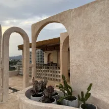Сначала мы жили на 6 этаже с боковым видом на море. Решили переселиться в номер на 7 этаже с террасой и видом на море. Вид шикарный. Бассейн на улице не использовали, немного страшновато в нем купаться)) персонал отеля очень доброжелательный, помогали с багажом, бесплатно отвезли в аэропорт. Единственное нет завтраков, это конечно страдание. Найти еду по душе так и не удалось. Помогали только фрукты из магазина. Надеемся, что вернемся еще раз!
