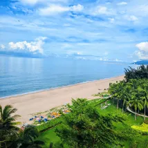 Отель расположен на территории живописного района Тянья Хайцзяо, до него можно добраться на туристическом шаттле. Отель находится во втором ряду от моря, что делает его тихим и спокойным местом вдали от суеты. После активного отдыха на пляже здесь можно по-настоящему расслабиться, поскольку нет уличного шума. Это настоящий подарок для тех, кто любит поспать подольше по утрам. Из моего номера с одной стороны открывался вид на море, и что особенно ценно – ничего не загораживало обзор. При этом цена за номер была умеренной. Вечером можно спуститься по каменным ступенькам, прогуляться по берегу моря и принять участие в различных мероприятиях. Хоть отель и не находится прямо на первой линии, до моря всего 2-3 минуты ходьбы.
