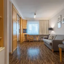 Номер старый, места довольно много, но несколько розеток бесполезны, а розетка для телевизора даже не включается. Тем не менее, я всё равно ставлю ему хорошую оценку. Расположение довольно безопасное, а ресторан по соседству тоже отличный.