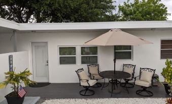It only takes one minute to drive or 8 minutes to walk over to the beautiful Nokomis beach on Casey Key. Supermarkets, gas stations, banks, restaurants, bike/boat/kayak and jet ski rentals are close by. There are only three condos on the property. Calm neighborhood with lots of palm trees and other tropical plants. Enjoy your mornings sipping coffee on the patio. Walking through the bridge to the island, you can watch boaters sometimes followed by dolphins on the intercoastal waterway. We provide beach accessories. Free on site parking. We look forward to having you!About pets:No pets allowed.About checkOut:Check out before 11:00 AM.About children:Children allowed: ages 0-17.About customRules:No vaping..About checkIn:Check in after 4:00 PM.About smoking:Smoking is not permitted.About minBookingAge:Minimum age to rent: 24.About events:No events allowed.