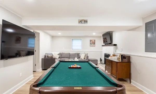 The house is 6 minutes from Downtown Broadway and 8 minutes from the famous Saratoga Race Track. Saratoga Spa State Park is 3 minutes away, where you can enjoy trails, an exceptional 27 Hole golf course, restaurant, and natural mineral springs. Don't forget to make a stop at Saratoga Lake to enjoy the views from Waterfront Park with its own beach and free parking only 10 minutes away. If your looking for a larger lake to visit don't forget the iconic Lake George only 36 minutes away. Six Flags Great Escape is the the perfect place for the whole family to enjoy a days of fun and adventure only 32 minutes away. The Saratoga Performing Arts Center (SPAC) is also only 3 minutes away. Only a 5 minute drive to the local grocery store, pharmacy, and some of the areas best pizzeria. Come and enjoy everything Saratoga Springs has to offer and relax in the spacious backyard, two large decks, fire pit, outdoor games, and plenty of room for 14 guests to enjoy themselves and relax in the central air conditioning on those hot days while playing a round of pool. Guests will have full use of the private driveway which has room for up to four cars. Street parking is also free. We are pleased to offer the option to bring your furry friends at a 2 pet maximum and there will also be a small cleaning fee due to the additional cleaning needed feel free to inquire for more details. Please note that guests will not have access to the garage.About pets:Pets allowed: dogs (limit 2 total).About checkOut:Check out before 11:00 AM.About children:Children allowed: ages 0-17.About checkIn:Check in after 4:00 PM.About smoking:Smoking is not permitted.About minBookingAge:Minimum age to rent: 18.About events:No events allowed.