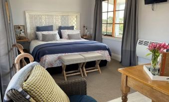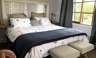 This 1 bed, 1 bathroom adult studio, set on approx 60 acres North West Tasmania. This Historic farm studio looks out over a beautiful valley and water course. Relax in the mid day sun on your private verandah with a cup of tea and watch the farm animals go about their day or get active and play garden chess or crochet. The spacious studio offers a large, very comfy King bed, with views out window, quaint dining area right along side a efficient kitchenette.