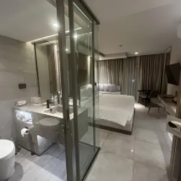 Кровать невероятно удобная, она обеспечивает спокойный отдых. Вам также может понравиться бассейн в Bayphere; новое здание бассейна особенно красиво. Оно создает спокойную атмосферу, идеально подходящую для релаксации. Кроме того, от отеля до пляжа всего 100 метров, что позволяет легко наслаждаться спокойными волнами и песчаным берегом. Цена была более чем приемлемой.