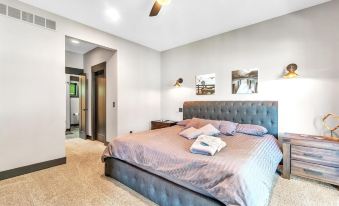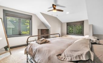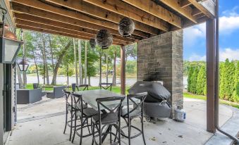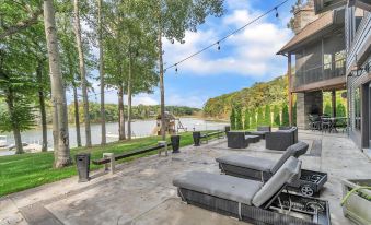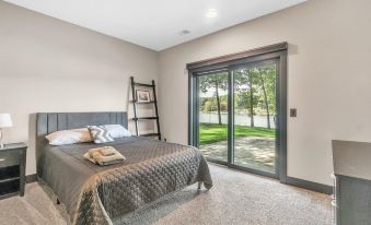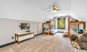 One queen bedroom with lake view, plus a huge bunk room with two bunk beds and movie area for kids, plus an additional bedroom with a full size bed - total of 5 bedrooms. Walk in, soak in the view and relax. Gourmet chef's kitchen. Laundry. Movie area for kids in custom Bunk room.