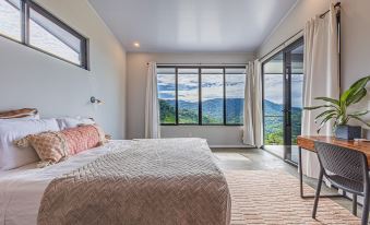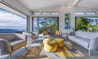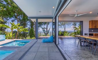 Experience true indoor-outdoor living at Justo Perfecto, a brand new vacation rental with 360-degree views of the ocean and mountains. Located at an elevation of 1100 feet, you'll be able to enjoy panoramic views of the Pacific coastline while still being just 15 minutes from the nearest beach. This is the perfect location for any type of activity or tour – Justo Perfecto is just 15 minutes from Quepos Airport and within 30 minutes of any type of attraction you might want to visit. Adventures are abound with ziplining, fishing, surfing, hiking, waterfalls (in neighborhood), beach, horseback riding, ATV, whitewater rafting, etc..... The house was completed in June 2022 and features beautiful Costa Rican wood finishings. From every window, you'll be able to watch the sun rise over the mountain and set over the ocean, as well as see an array of wildlife including monkeys, toucans, and more. Cool off in the pool or relax in the hot tub, and enjoy the fully equipped high-end kitchen complete with an ice maker and beverage refrigerator. The smart TV is perfect for movie nights, or you can simply relax and embrace the jungle lifestyle. And if you want to indulge in some truly unique meals during your stay, Chef Rambo, an award-winning chef and your concierge, is available for hire. The vacation rental offers private bedrooms with en suite bathrooms, air conditioning, and balconies or patios, providing a comfortable and luxurious experience for guests. The fiber optic WiFi and battery-backup power supply are also convenient amenities for those who need to work remotely during their stay. It's also good to know that the property has several safety features in place, including water that is filtered through multiple systems and a backup water tank, as well as solar power and a backup power supply. This means that guests can enjoy a truly off-grid experience if desired, while still feeling safe and secure. The requirement for a 4x4 vehicle to access the property is also worth noting, to traverse the mountain road. And the security gate, cameras, alarm system, and community guard all contribute to a sense of safety and security at the property. These features, along with the unique and luxurious amenities, make the vacation rental a truly one-of-a-kind destination. www.justoperfecto.comAbout pets:No pets allowed.About checkOut:Check out before 11:00 AM.About children:Children allowed: ages 0-17.About customRules:No loud music after 10pm.About checkIn:Check in after 4:00 PM.About smoking:Smoking is not permitted.About minBookingAge:Minimum age to rent: 27.About events:No events allowed.