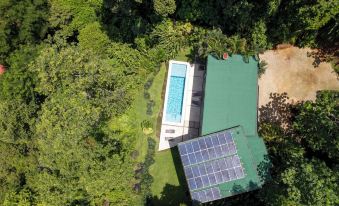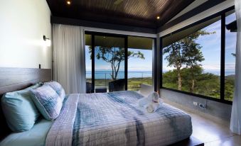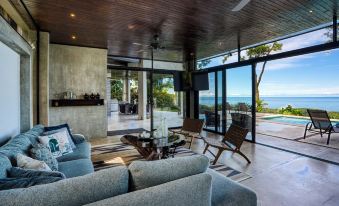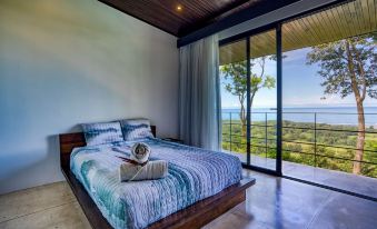 There is an outdoor shower near the pool and a half-bathroom downstairs. The master King suite's bathroom has a private balcony with an outdoor shower overlooking the Pacific. The second King room and Queen room have a shared bath with a glassed-in shower overlooking the Pacific Ocean. Surrounding the house is a rainforest jungle abundant with sloths, monkeys, toucans, butterflies and more.
