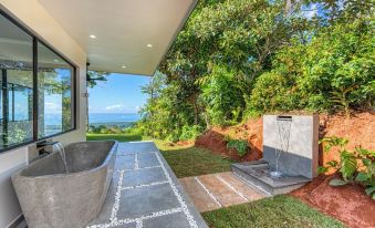 You will have access to the entire house, which includes a large yard, infinity pool, covered patio (pergola), and outdoor tub with fountain and incredible ocean and mountain views. The driveway makes a great walking trail to view toucans and other native birds. The sunrises and sunsets here are spectacular!