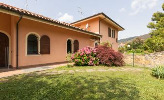 Comfortable semi-detached house "Trabbia", 2 storeys. 2 km from the centre of Cisano sul Neva, 8 km from the centre of Albenga, 14 km from the centre of Alassio, 8 km from the sea. Private: property 1'000 m2, terraced garden, 50 m2 (fenced) wildlife garden and flowers. In the house: internet access. Parking on the premises. Grocery 2 km, supermarket 2 km, bakery 2 km, bus stop 500 m, railway station "Albenga" 8 km. Nearby attractions: caravelle acquapark 8 km, Monte Bignone 630m 14 km, Rocca Barbena 6 km. Please note: car recommended. Owner lives in separate semi-detached house. The owner has a dog. "Villa Trabbia", 4-room semi-detached house 200 m2 on 2 levels, on the ground floor. Comfortable and modern furnishings: living/dining room with TV. Exit to the garden. 2 double bedrooms. Kitchen-/living room (oven, dishwasher, 4 gas rings, toaster, kettle). Exit to the garden. Bath/bidet/WC, shower/bidet/WC, hydro massage bath. Gas heating. Heating available only from 15.10. to 15.04. Upper floor: (spiral staircase), 1 room, ceiling height 100 - 180 cm with rooflight with 2 beds (80 cm, length 200 cm), bidet, separate WC and air conditioning. Exit to the balcony. Terrace 50 m2, patio 30 m2, large garden 500 m2. Terrace furniture, barbecue. View of the countryside. Facilities: washing machine, children's high chair, baby cot. Internet (WiFi). Parking (2 cars). Maximum 1 pet/ dog allowed. In the basement (connected by a spiral staircase) there is a warehouse with washing machine and bike storage. IT009025C26AG3EZTY