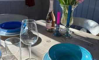 There is a high chair and travel cot available for your little ones, plus plastic bowls and plates.