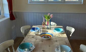 The Hayloft is a charming, family-friendly single-storey property with two bedrooms, nestled in the picturesque Alde River valley in coastal Suffolk. Situated on a small 40-acre family farm, guests can enjoy ample dog walking options, including fenced-off fields, a private woodland area, and nearby footpaths.