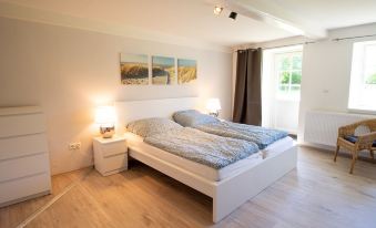 Wir haben uns zu fünft (alles Erwachsene), sehr wohl gefühlt, wie zuhause. Es war sehr ruhig, toll gelegen,man hat genug Platz, die Unterkunft ist super ausgestattet, mit allem, was man braucht.Die Gastgeber waren sehr nett, zuvorkommend und unkompliziert. Privatsphäre gewährleistet. Zu der Unterkunft gehört ein großzügiger Garten, in dem man grillen oder einfach so verweilen konnte.Wirklich sehr empfehlenswert.Das Haus an sich stilvoll und liebevoll renoviert, mit Liebe zum Detail.Bester Urlaub an der Ostsee.