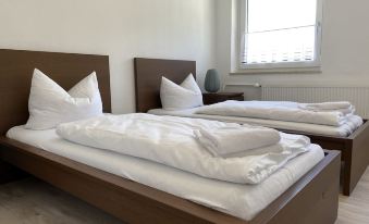 Welcome to our finished 65 m² workers apartment in the city of Schwandorf. You will have two bedrooms with two single beds in each bedroom. The apartment is good for up to four people. A fifth person can sleep on the sofa.