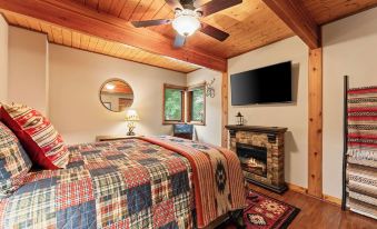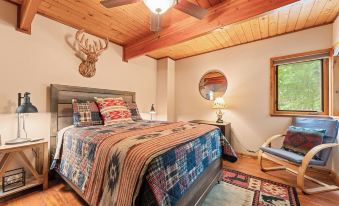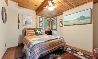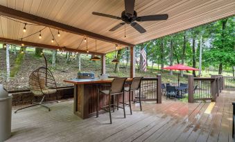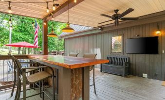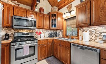 Located on Lake Shore Drive in Branson near Kanakuk Kamps, enjoy what this 4-bedroom lodge home on 2.7 acres has to offer. Step into this enchanting property featuring 1 king bed, 1 queen bed, 1 full bed, and 1 sofa bed. With a nicely furnished full size kitchen, 3 bathrooms including a jetted bubble bathtub, this delightful retreat provides all the comforts you need. Whether you're relaxing in the cozy living room or enjoying the outdoor living space on a warm day, this perfect getaway is ideal for families or groups of friends. We look forward to welcoming you to our home.About pets:Pets allowed: dogs and cats (limit 2 total).About checkOut:Check out before 10:30 AM.About children:Children allowed: ages 0-17.About customRules:Driveway is next right after BIG red and white bobber at side of road..Do not lock the door knob on the front door with the button lock or you will be temporarily locked out. There is a second locked key just incase..About checkIn:Check in after 3:30 PM.About smoking:Smoking is not permitted.About minBookingAge:Minimum age to rent: 22.About events:Events allowed: family gatherings, birthday parties, weddings.Maximum event attendees: 12.