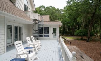 This beautiful 5 bedroom, 5.5 bathroom home has been updated and is new to our rentals and is outstanding. It is centrally located on the island, making it easy to access the top end with it's amenities or the bottom half of the island's pools and private beach. The perfect spot for your large extended family or multiple families. This large home backs up to our famous low country tidal marsh. The spacious backyard with multiple porches and decks make for great outdoor living space, as well. All of the bedrooms have their own or access to full baths. This home easily sleeps 12. There are hardwood floors throughout the first floor with ceiling fans in all the rooms.