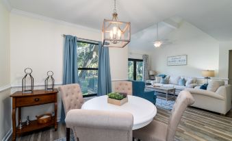 This newly renovated and well-located villa lets you experience peaceful island living at its best! Relax in this spacious second floor unit as you enjoy golf views framed by grand oaks and Spanish moss from your deck or windows overlooking the 8th tee of Ocean Winds Golf Course. Experience the privacy and luxury of Seabrook's wide, pristine beaches located just minutes away within easy walking or biking distance.